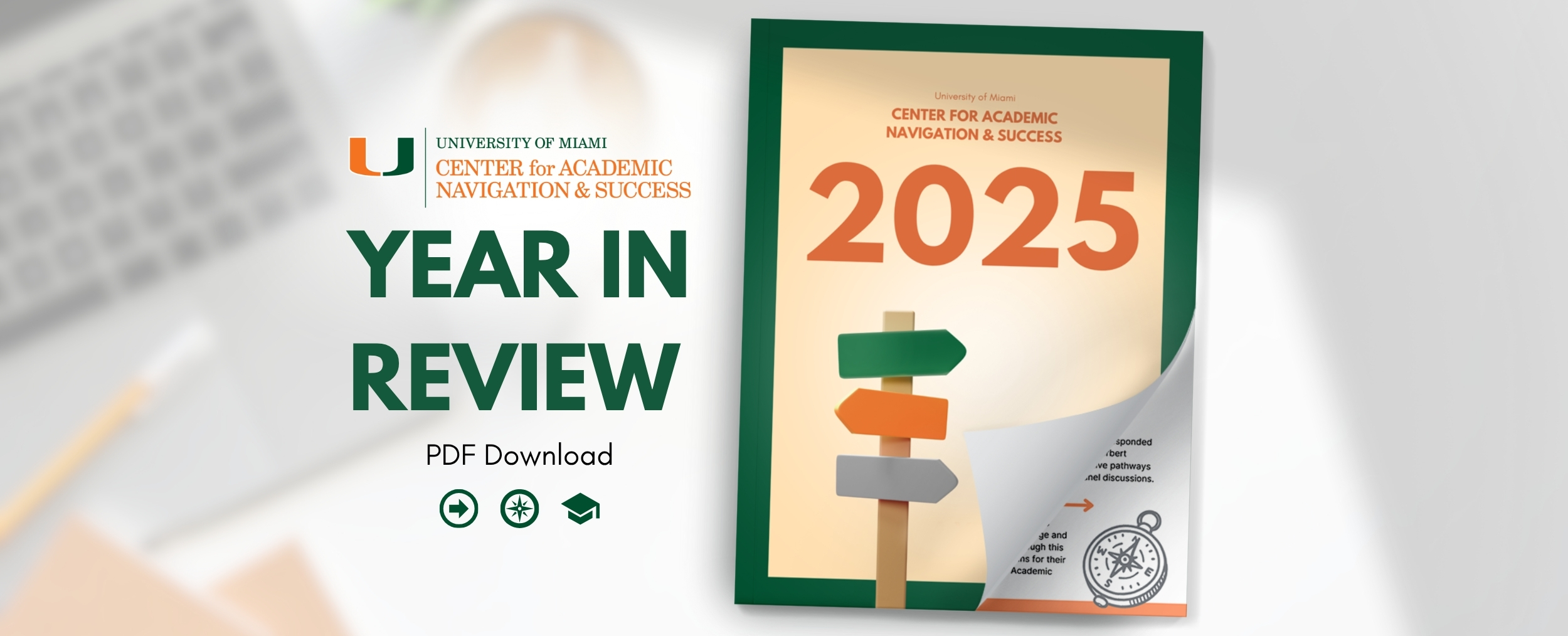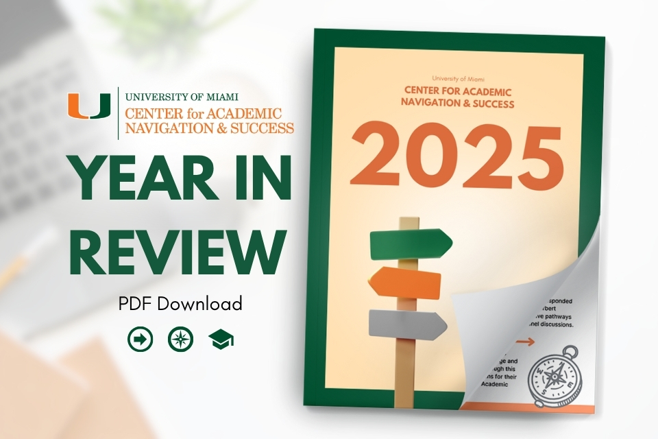 The mission of the Center for Academic Navigation and Success at the University of Miami is to empower all undergraduate students to excel academically and achieve their educational goals. The Center fosters an inclusive and student-centered culture that equips students to own and navigate their academic journeys successfully through personalized guidance, comprehensive resources, and collaborative support.